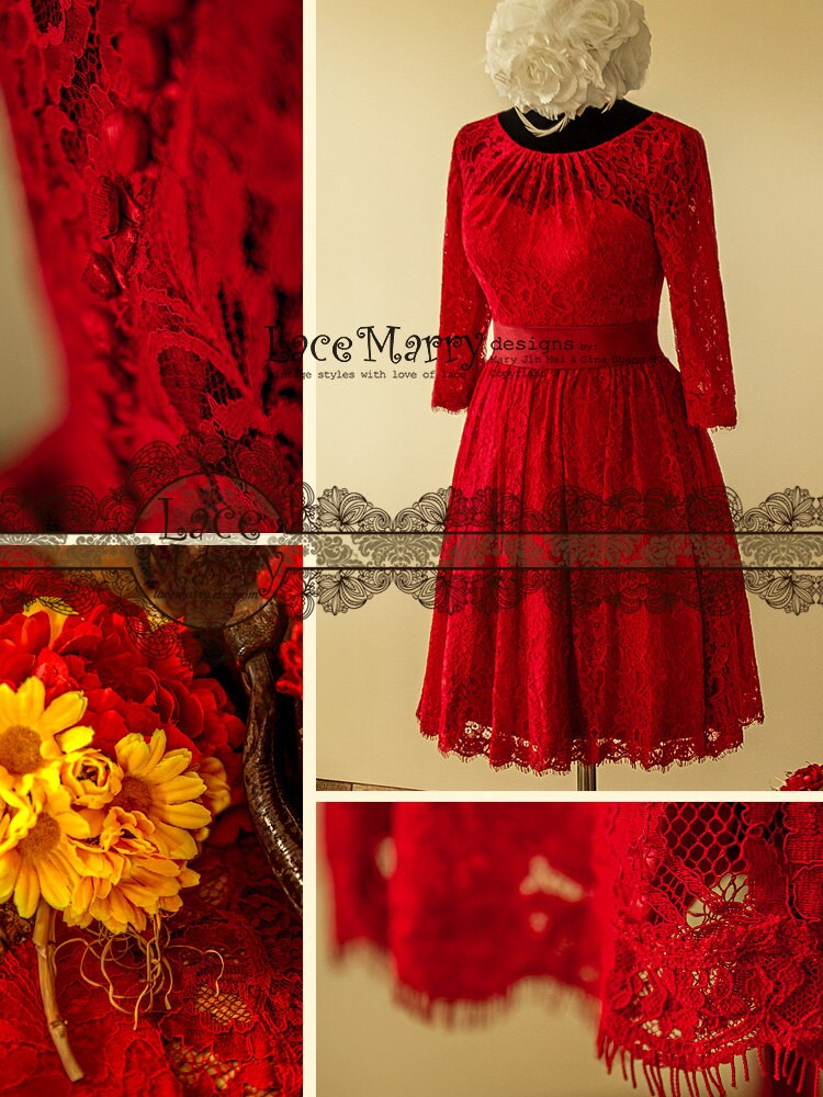 Knee Length Red Lace Wedding Dress Short Red Wedding Dresses Etsy Australia