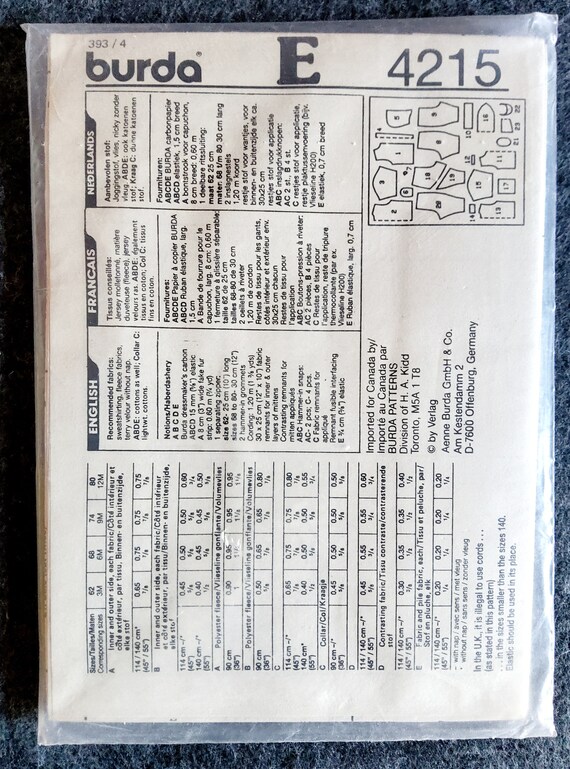 Burda 4215 Babies Snow Suit Winter Outfit Jacket Trousers Unopened Ebay